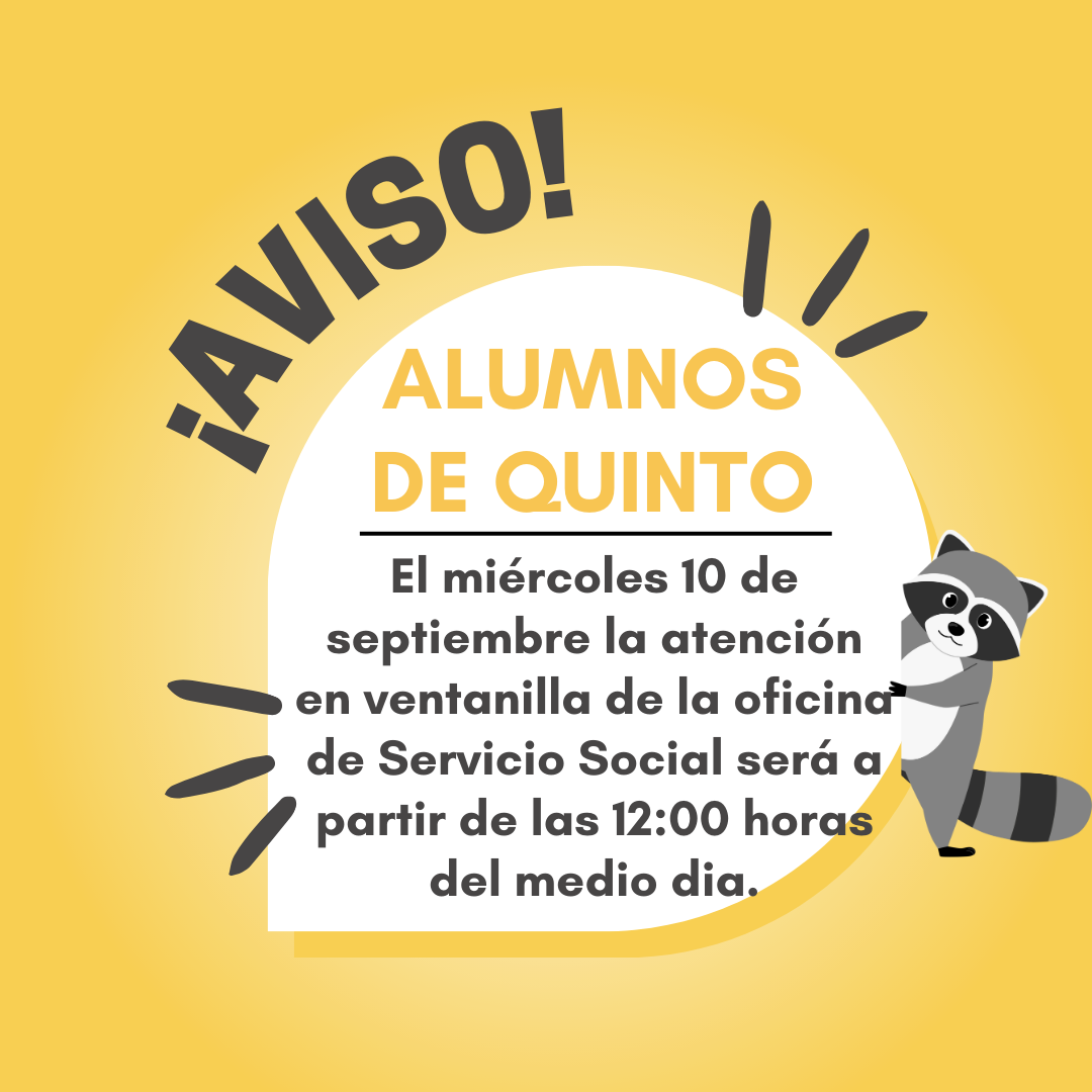Para el día miércoles 10 de septiembre el servicio en ventanilla de la oficina de servicio social se dará a partir de las 12:00 horas del medio día.