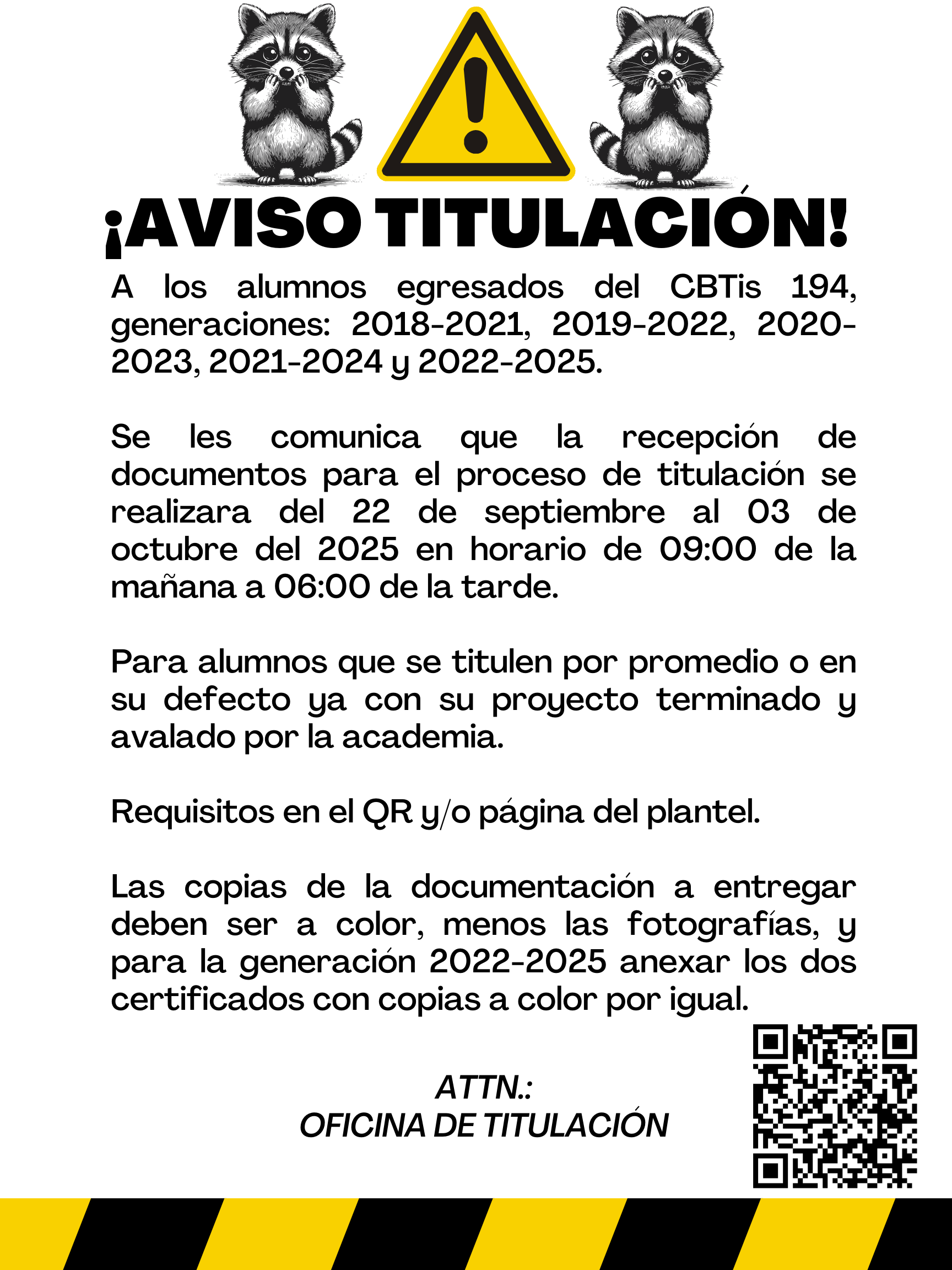 A los alumnos egresados del CBTis 194, generaciones: 2018-2021, 2019-2022, 2020-2023, 2021-2024 y 2022-2025.